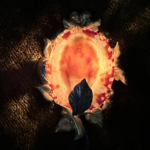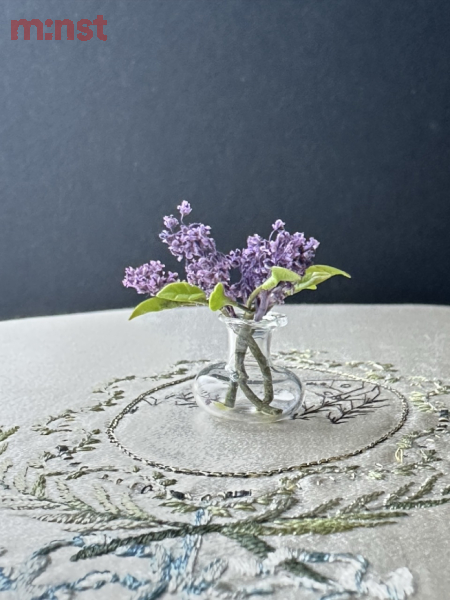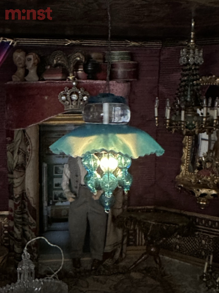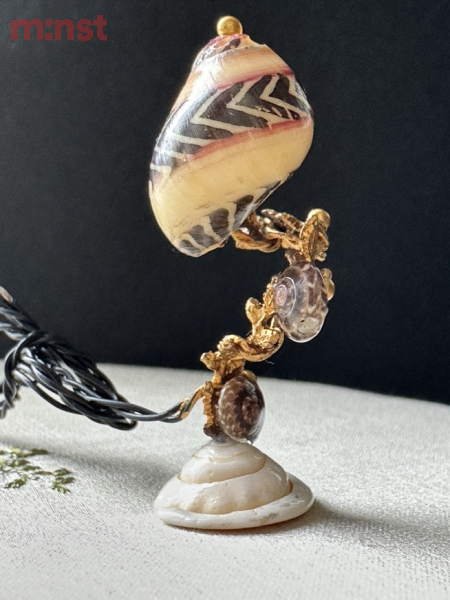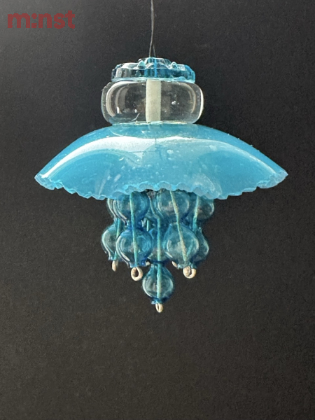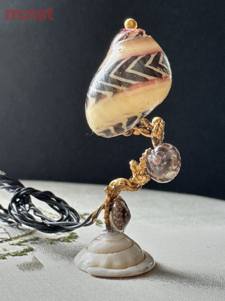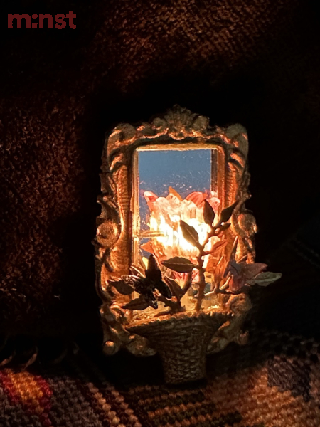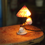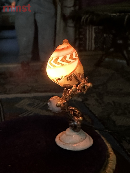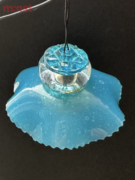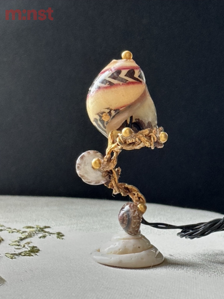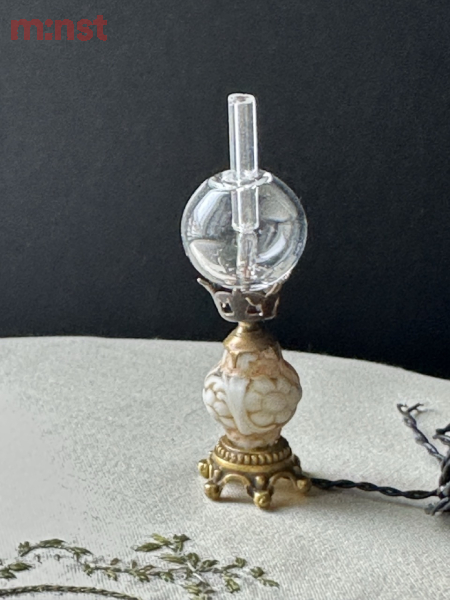 Made of glass teardrops and vintage glass flowers. The hollow glass bead with 12V.light is hand painted on the inside.