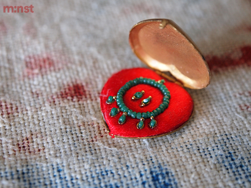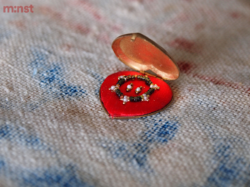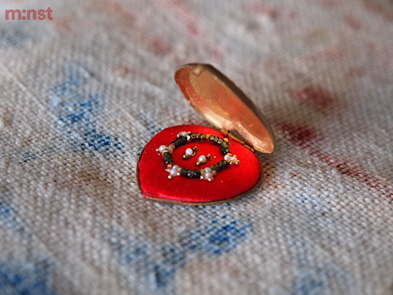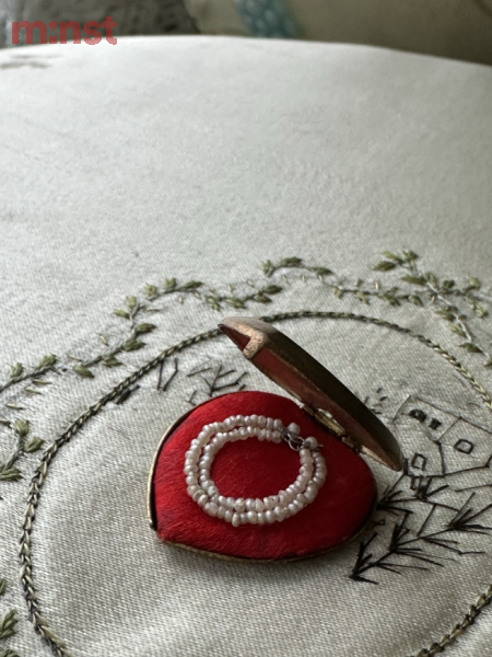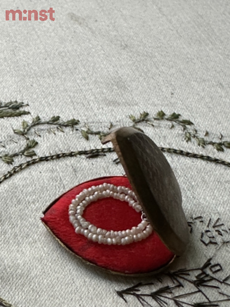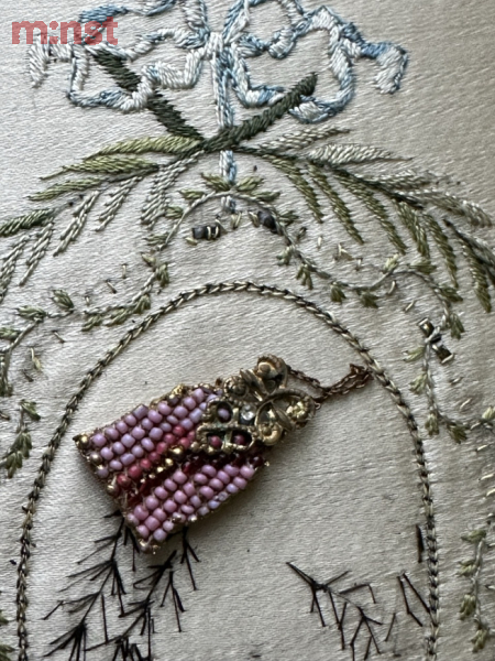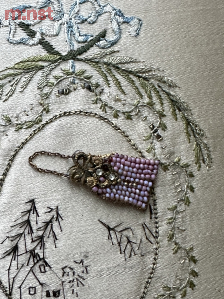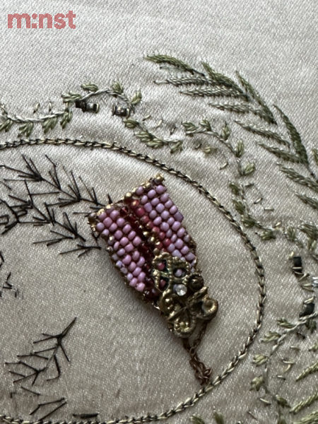 Metal, silk, freshwater pearls and tiny glass beads from 1920-ies.
