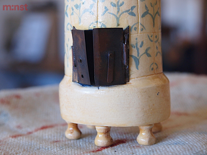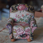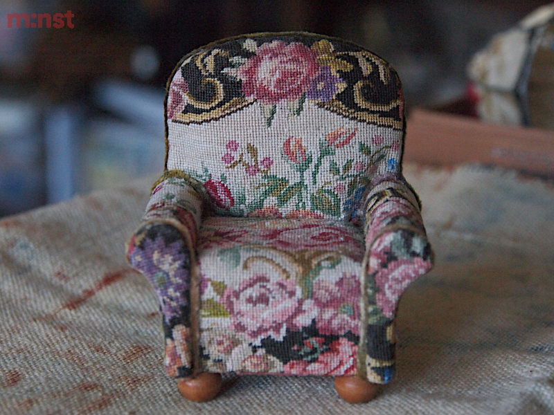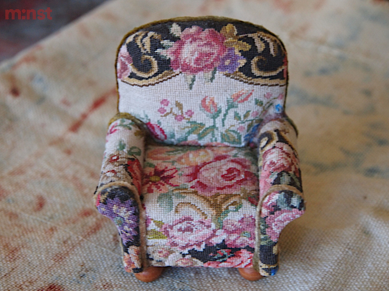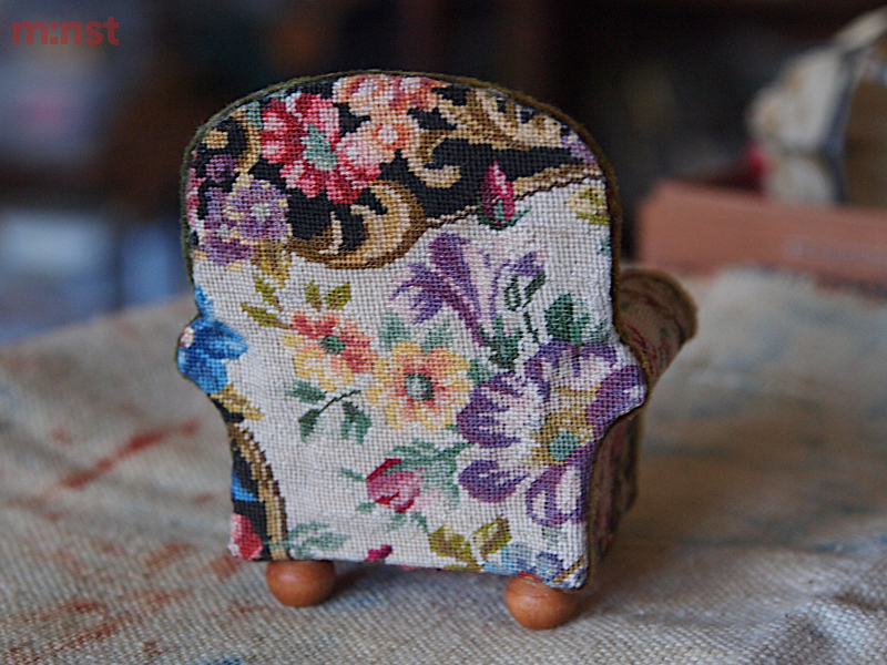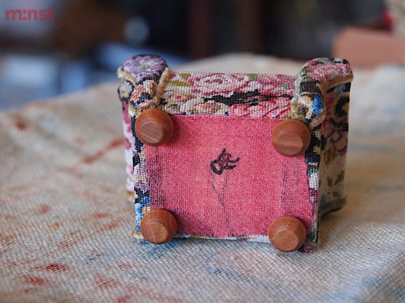Wood and hand embroidered textile.H.75mm W.65mm D.45mm